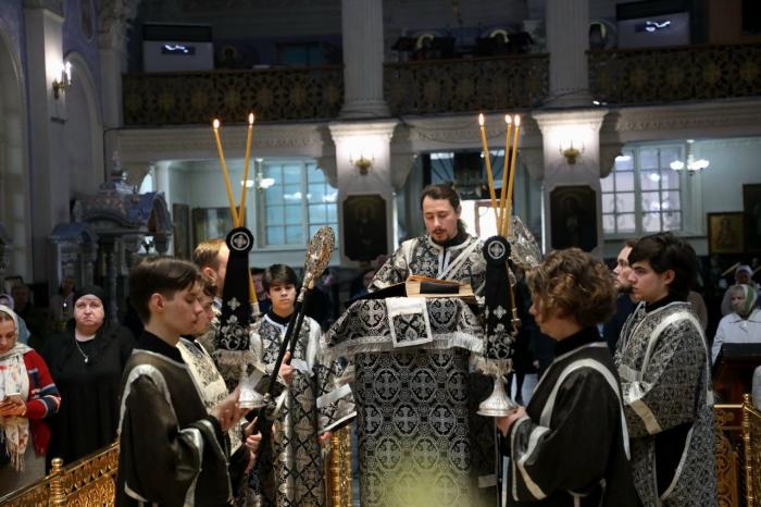 Его Высокопреосвященству служили: иерей Димитрий Хабаров, иерей Владислав Утибаев, иеромонах Тихон (Баймурадов), диакон Рустик Ковалёв, диакон Пётр Гнатик, диакон Сергий Хон, диакон Василий Щетинин, диакон Виталий Володченко.